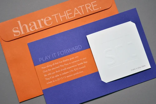 Seattle Rep puts out a campaign each year to promote their latest shows and encourage new memberships. I created a unique set of materials that would elegantly display their "Play Pass" program.